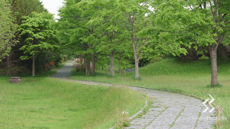 それから、小径の脇に植えられている木々の重なり方が計算され尽くされてて、「凄い」というか「えげつない」というか😄