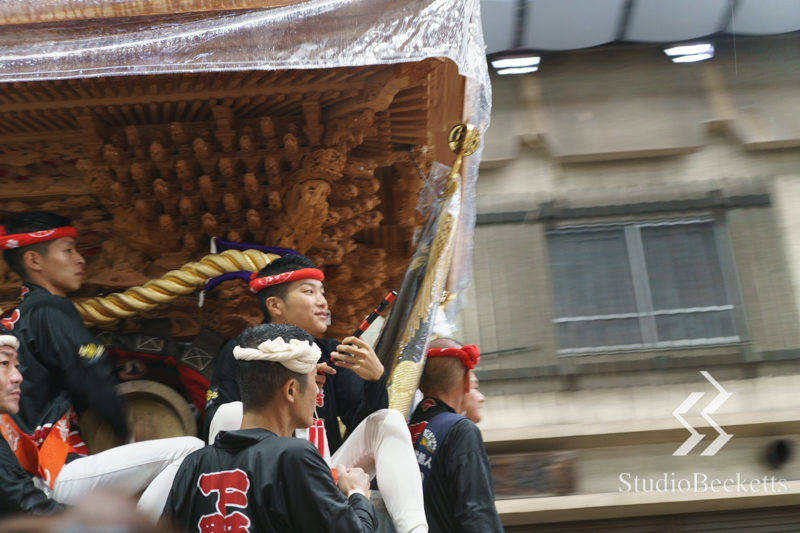 日曜日は暴風雨で中止になりそうなんで、「今日はだんじりやってるから、観に行こう!」と😆