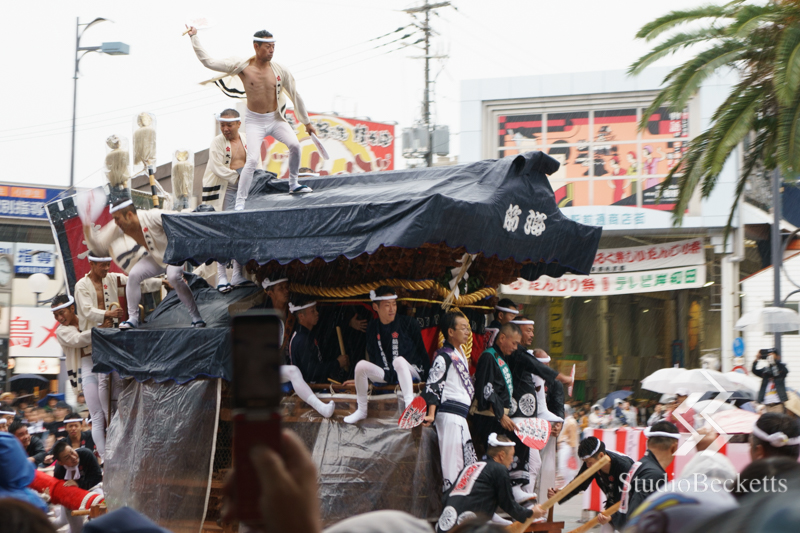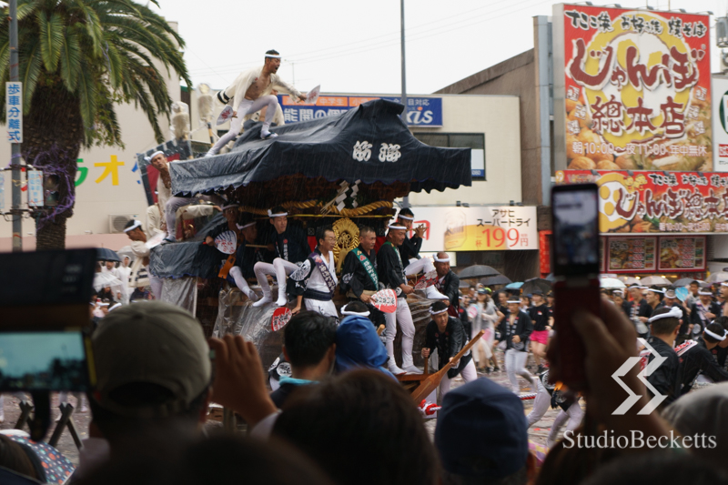 日曜日は暴風雨で中止になりそうなんで、「今日はだんじりやってるから、観に行こう!」と😆